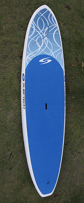 |  (click to enlarge) | 10’6" Surftech (Blue Swirl Universal SUP) This is SUP was designed for stability and glide. The added volume and full rail makes this board the most stable SUP on the market. Great for paddlers learning to SUP for the first time. Featuring a completely built in soft EVA deck pad for superior traction and grip along with an ergonomic carry handle. |